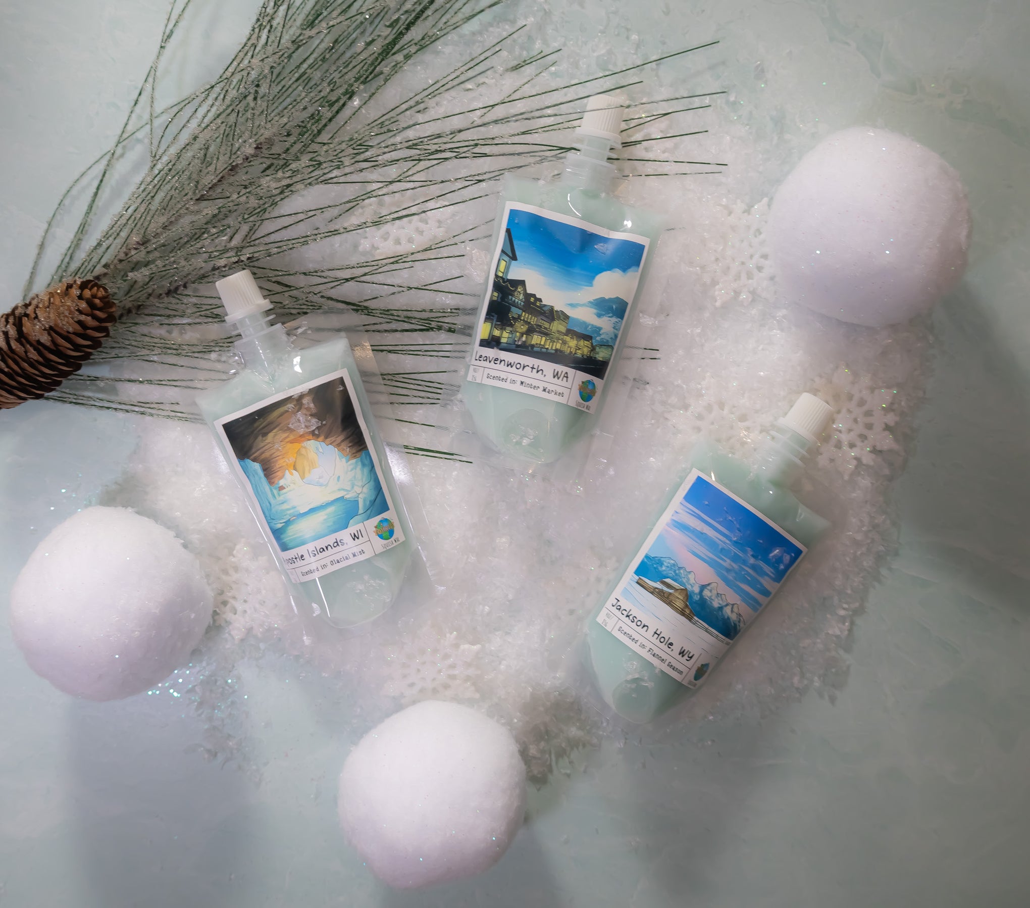 The Frostbound Tour bundle captures the stillness and warmth of snowy landscapes with all three seasonal scents: