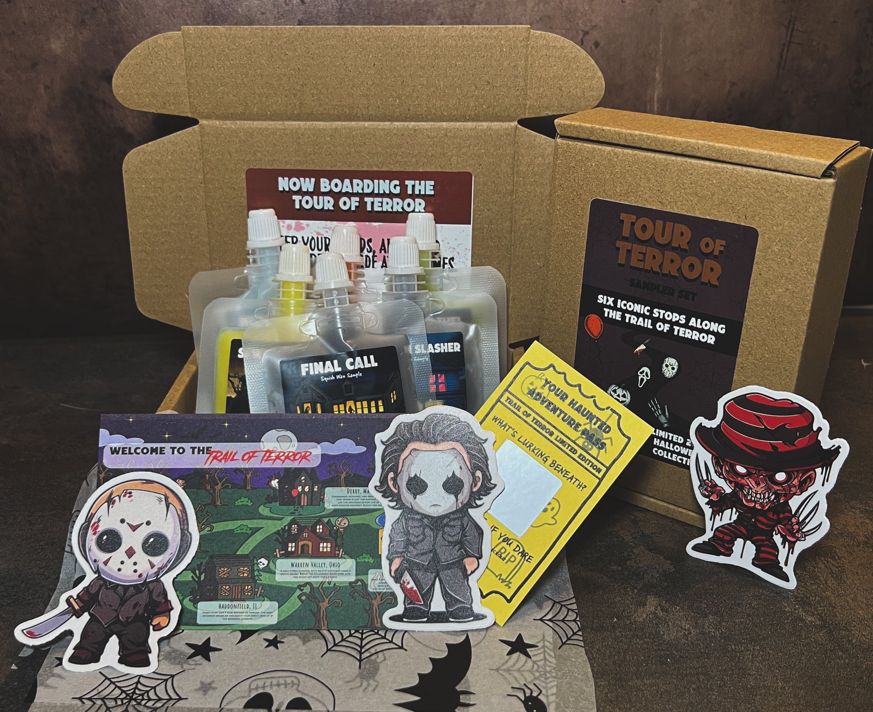 • Six .5oz Wax Melt Samples – Try every stop in the Trail of Terr-or Collection.