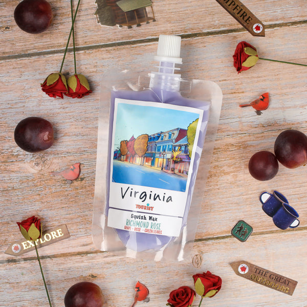 Part of The Scenic Route Collection, Virginia is hand-poured, pet-safe, and packed in our signature squeezable pouch with hand-drawn, collectible label artwork.